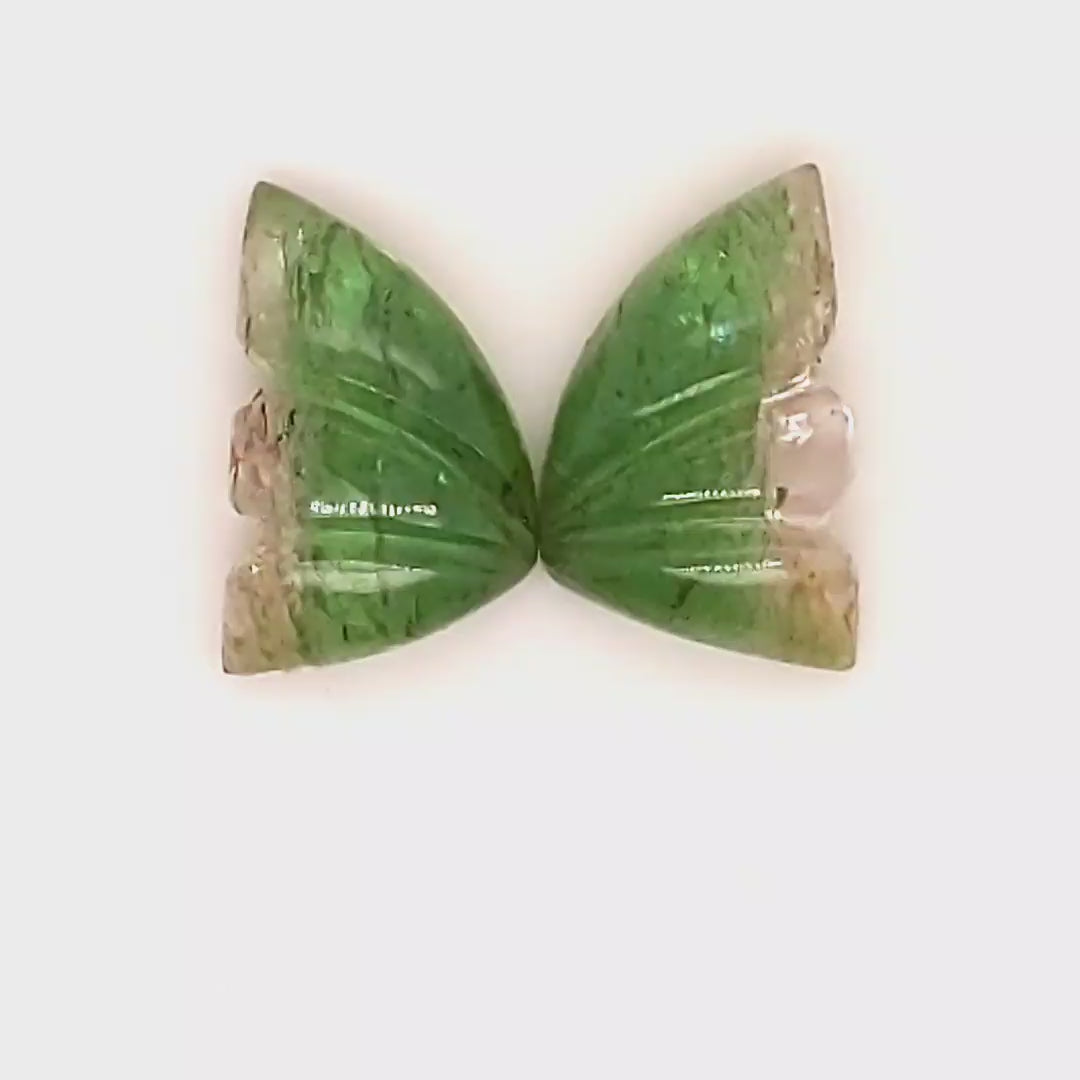 Natural Watermelon Tourmaline Butterfly Carved